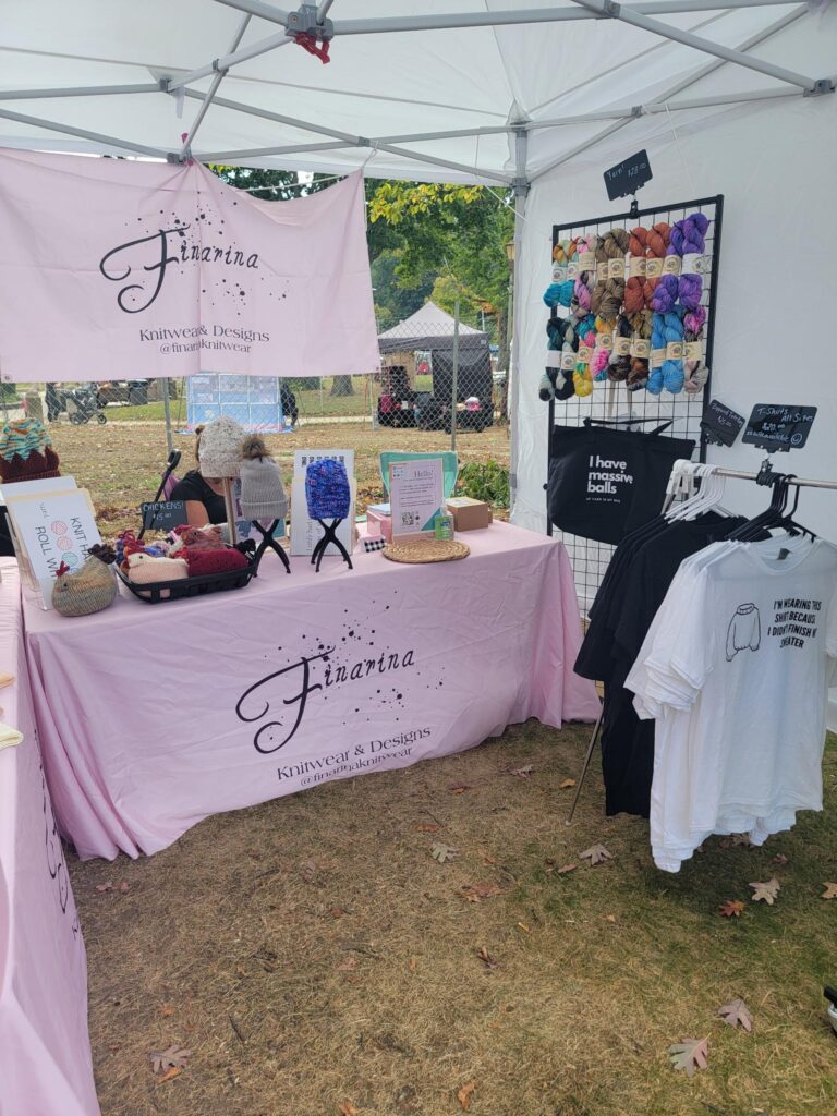 Christina is flexible in her offerings and can bring what makes sense for your customer base for your event. For example, if your customers are looking for gifts, yarn and podcast merchandise might not make sense. Vice versa, ready-made items would not be appropriate for a crowd with fiber artists looking to create their own items.