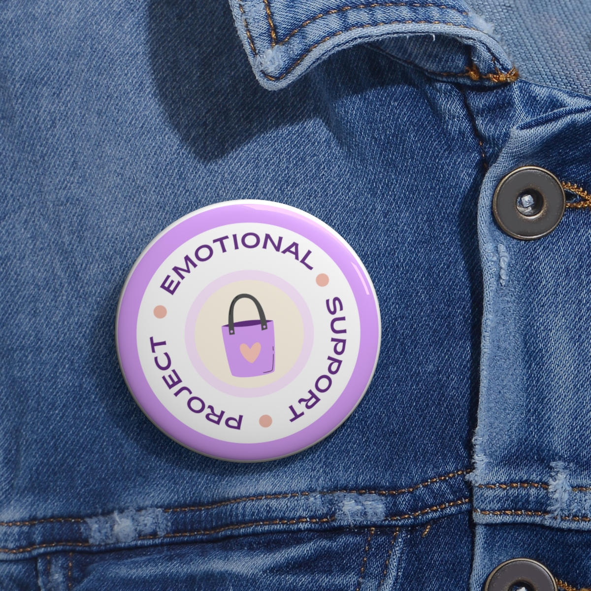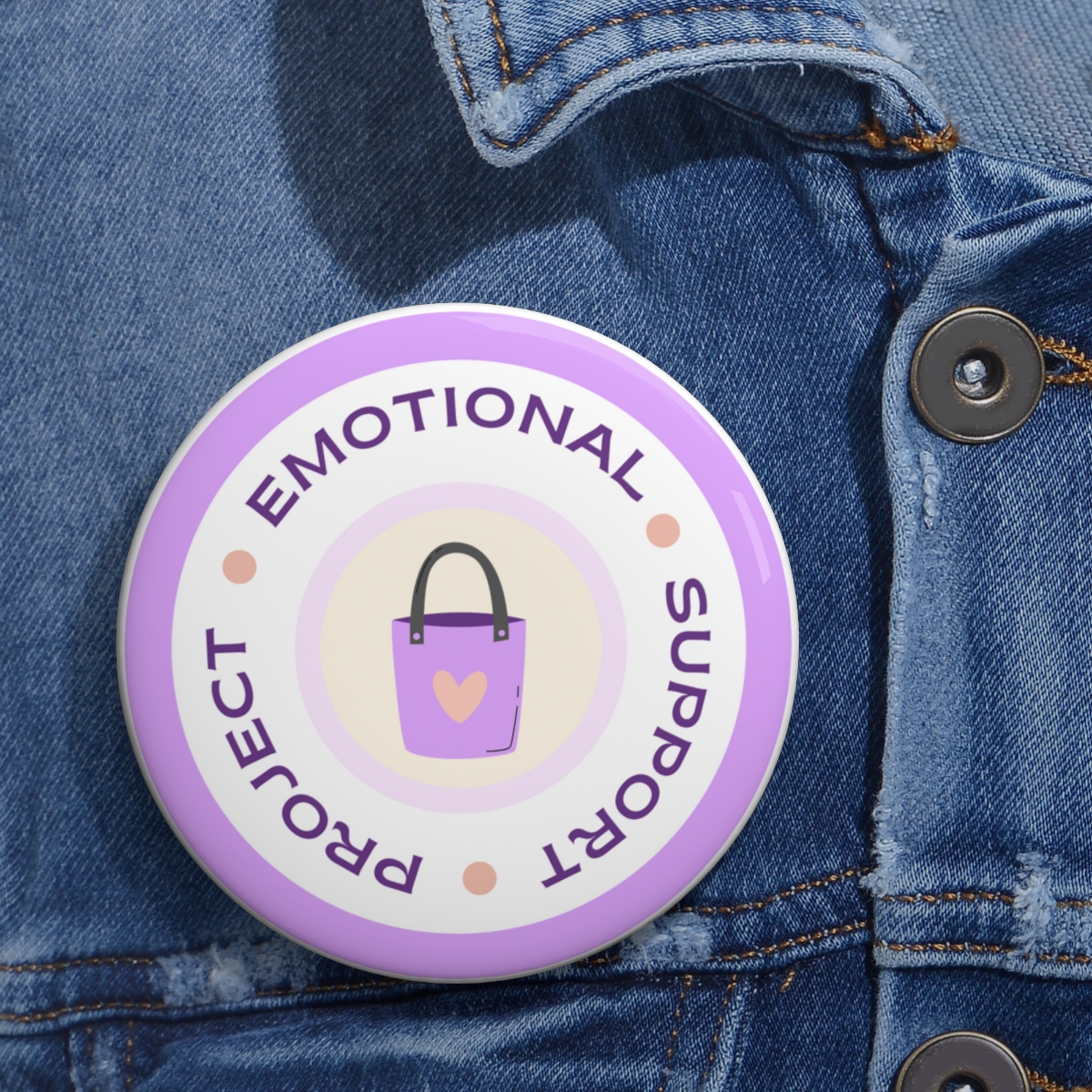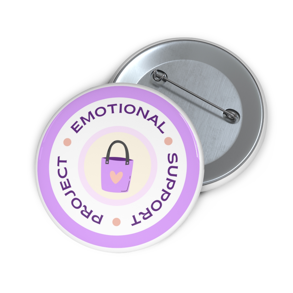 I can’t leave my house without my emotional support project! Tag your latest craft bag with an emotional support project pin in our purple/pink color or wear it on your clothes so people know you have an ESP with you for support. Available in 3 different sizes with a safety pin backing.
