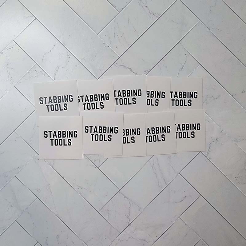Stickers measure 2″ by 2″ in a matte finish.