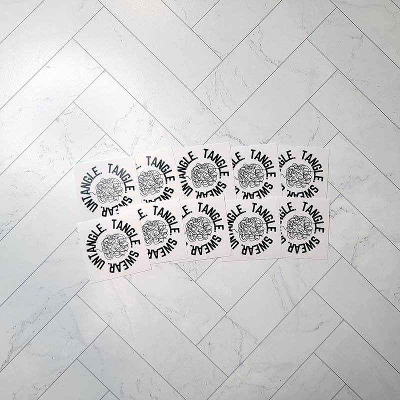 Stickers measure 2″ by 2″ in a matte finish.