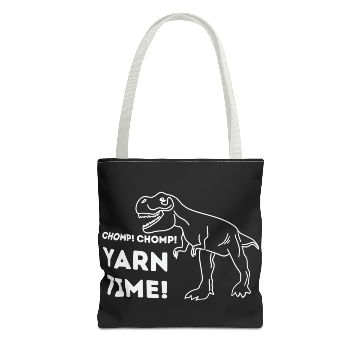 Crafted from high-quality materials, the “Chomp Yarn Time” Tote Bag is made for everyday use. Its 100% spun polyester fabric ensures strength and durability, while the black background with white artwork offers a sleek, bold look. The sturdy construction makes it ideal for carrying yarn projects, books, groceries, or anything else you need on the go.